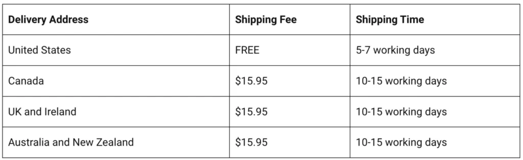 Orders are processed within 2–3 days. For customers in the US, delivery typically takes 5–7 days. International orders may take 10–12 days, depending on customs procedures.